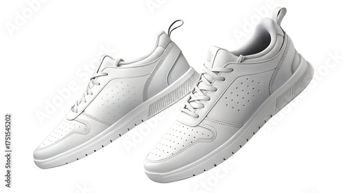 Floating Pair of White Minimalist Casual Sneakers Isolated