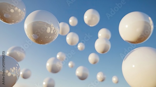 sphere, ball, circle, bubble, floating, levitation, light, sky, blue, cloud, white, shape, geometry, abstract, design, pattern, three-dimensional, animation, render, modern, art, visual, composition, texture, smooth, lightness, softness, element, motion, object, form, air, space, background, graphic