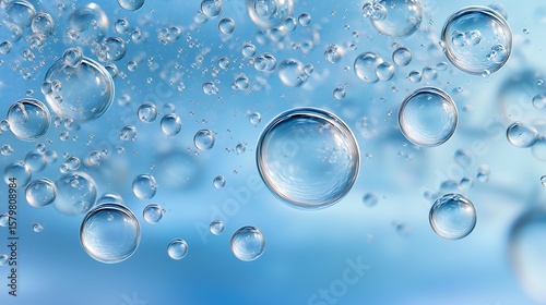 Floating Water Bubbles Background in Blue Liquid for Hygiene Concept