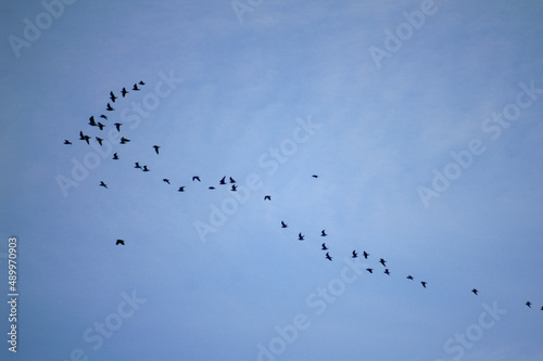 bird, flying, sky, formation, nature, migration, season, autumn, survival, beautiful, environment, travel, black, animal, wildlife, wing, direction, together, feather, sync, glade, flap, silhouette, scenic, flight, group, flock, fast, movement