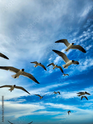 bird, gull, sky, flying, sea, blue, animal, freedom, wildlife, wing, white, flock, seagull, bird, seagull, flight, fly, nature, wing, wild, ocean, beak, gull, feather, clear sky, beach