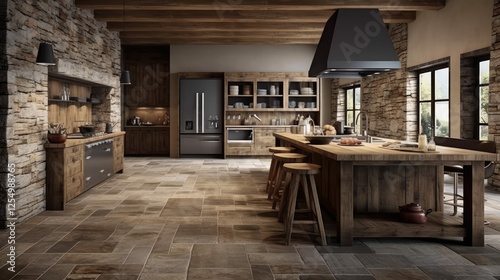 floor, stone, kitchen, illustration, rustic, warmth, character, natural, tile, earthy, tone, cosy, inviting, atmosphere, design, decor, interior, style, texture, hard-wearing, elegant, timeless, aesthetic, charme, traditional, modern, versatile, organic, handcraft, unique, ambience