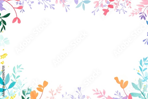Floral border frame card template. multicolor flowers, leaves, for banner, wedding card. Springtime composition with copy-space