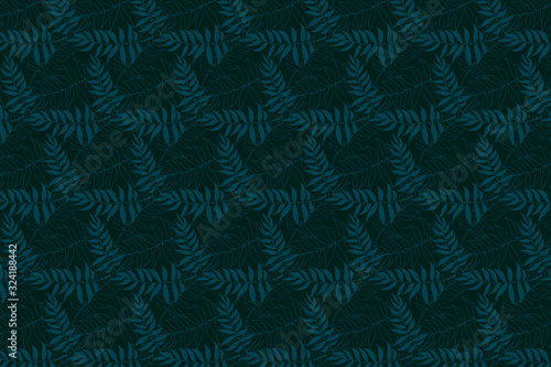 Floral dark blue background. Leaves pattern