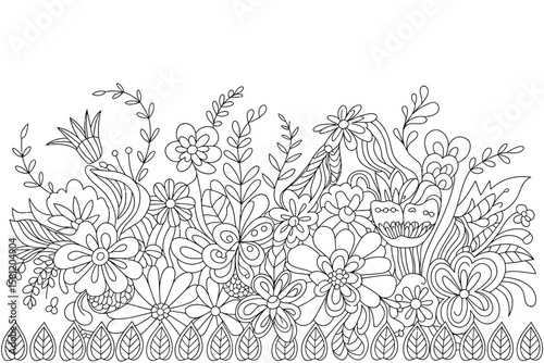 floral, flower, doodle, botanical, leaf, leaf, plant, drawing, vector, nature, garden, spring, summer, blossom, bloom, outline, decorative, ornament, vignetting, hand, drawn, line, colouring, page, book, zen, tangle, border, frame, vintage, retro