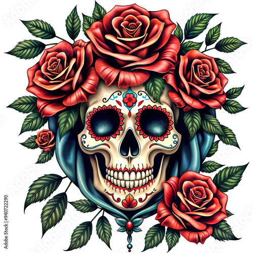 sugar, skull, floral, vibrant, rose, intricate, colourful, decoration, dia, celebration, holiday, traditional, mexican, festival, art, culture, festive, ornamental, flower, day of the dead, floral arrangement, vivid colors