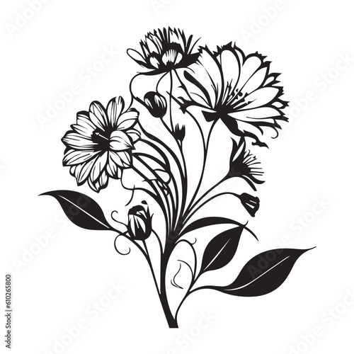 Floral Flower vector Illustration, This is a Floral Flower Vector Line art Black Color.