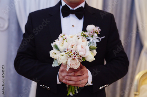 man, groom, tuxedo, suit, necktie, bow tie, hand, wedding, wedding, marriage proposal, celebrate, audit, flower, bouquet, bud, romance, bouquet, love, birthday, rose, holiday, mother's day, gift, couple, space, background, idea, valentine, blessing, notice board, signs, anniversary, plant, leaf, grace, festival, party, commemorate, christmas