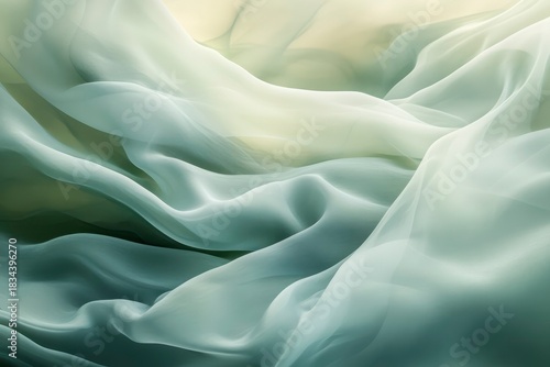 Flowing abstract forms with pale green and light blue colors