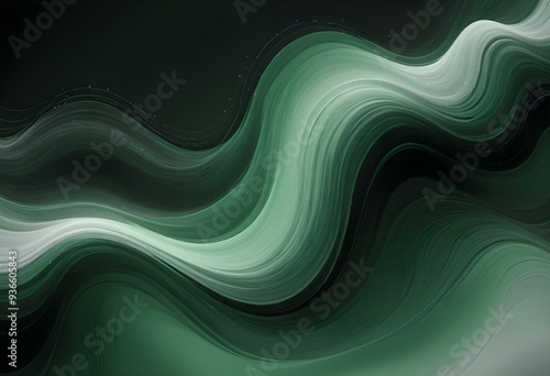 Flowing green and black abstract background with soft, wavy shapes and subtle sparkles