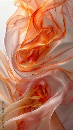 Flowing, translucent fabric with warm orange, red, and white hues, swirling gracefully in a dynamic and elegant pattern.