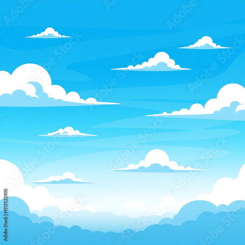 blue skies, sky, cloud, white cloud, cartoon, background, illustration, vector, bright, clear sky, sunny, daytime, weather, cumulus, fluffy, airy, light, peaceful, serene, cheerful, simple, clean, abstract, nature, landscape, heaven, atmosphere, climate, spring, summer, fisheye, panoramic, graphic, design element, children, children, animation, storybook, digital artwork, no people, copy space, light blue, horizon, cloudy sky, weather forecast