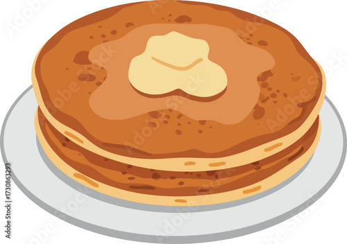 breakfast, food, illustration, butter, sirup, stack, sweet, delicious, morning, meal, dish, cooking, cookery, appetising, gold, brown, flat, lay, vector, isolated, homemade, pastry, bakery, dessert, snack, crepes, waffle, brunch