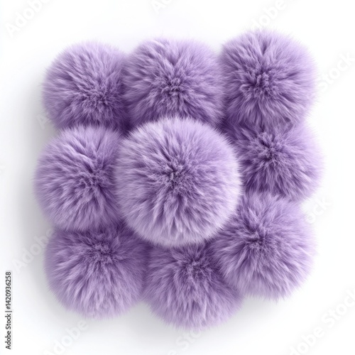 Fluffy purple pom-poms arranged in a square pattern