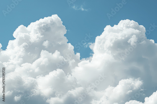 Fluffy white clouds against bright blue sky create serene and peaceful atmosphere
