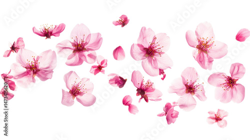 Flying and Falling Cherry Blossom Flowers Isolated on Transparent Background for Spring, Nature, and Floral Design Concepts