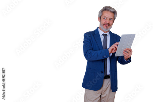 businessman, person, business, people, businessperson, portrait, man, entrepreneur, tablet, cyberspace, technology, lifestyle, online, app, online shopping, finance, male, success, corporate, manager, ceo, working, employee, leader, company, job, boss, background, isolated, happy, luxury, confidence, adult, positive, smiling, professional, mature, senior, caucasian, executive, grey, hair, confident, middle, aged, white, collar, smart