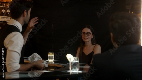talking, alcohol, sharpened, bar, barkeeper, goggles, counter, woman, beautiful, smiling, service, client, beverage, club, cocktail, barkeeper, drink, equipment, liqueur, man, waiter, whiskey, cheer, portrait, night, guest, smart, greeting, nightclub, caucasian, serving, nightlife, party, professional, pub, eatery, uniform, gin, rum, vodka, photogenic, smile, couple, friends, cube, glasses, tonic