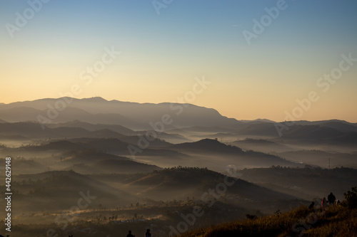 mountain, sunset, landscape, sky, sunrise, nature, sun, mountain, fog, morning, mist, hill, cloud, cloud, view, orange, beautiful, dawn, evening, vale, light, misty, blue, autumn, silhouette
