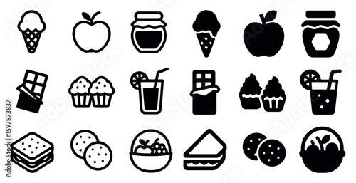 food, beverage, culinary arts, health food, solid, filled, minimal, vector, icon, set, graphic, cooking, nourishment, cookery, dining, nourishment, gastronomy, food industry, dish, fast food