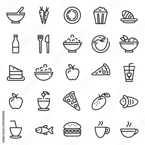 food, drink, vector, illustration, icon, symbol, dinner, menu, fish, meat, eatery, chef, fast food, fork, plate, set, spoon, bread, line, meal, soup, bakery, breakfast, cake, cooking, table, delivering, dining, graphic, outline, hamburger, logotype, vegetable, cafes, cutlery, isolated, kitchen, knife, pizza, sauce, seafood, burger, design, dish, donut, eat, eatery, french fries
