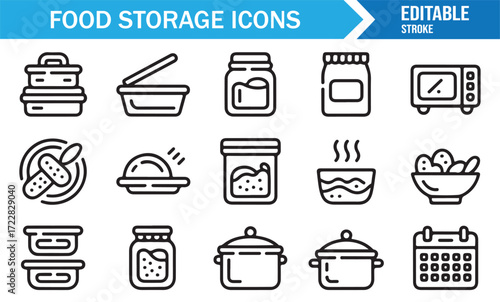 food, storage, icon, vector, editable, stroke, outline, container, jar, box, pot, bowl, kitchen, meal, pantry, cardboard box, illustration, design, collection, set, utensil, symbol, cooking, household, tool, object, stack, lid, serving, pan, modern, minimal, graphic, black, white, flat, style, element, appliance