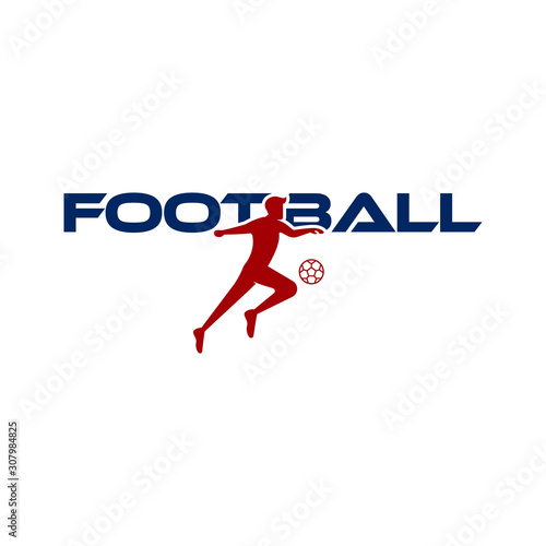 Football vector illustration of a silhouette football player isolated on white background. Sport Logo with Football text and Football player figure. Soccer vector for icon, logo, app, symbol.