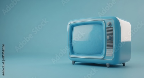 For a retro media design, a vintage television with an antenna is set against a blue background