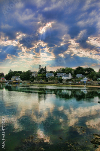 water, forest, drill bit, brittany, circuit, hike, heaven, landscape, nature, blue, summer, park, cloud, shaft, panorama, outside, green, sunset, beauty, view, village, france, europa, west, city, architecture