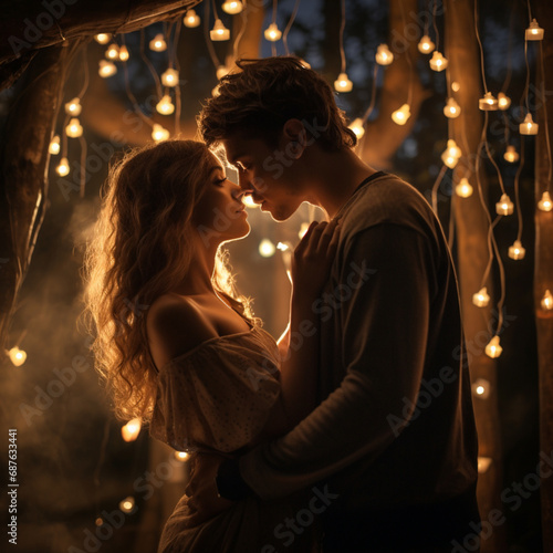 Fotografia con detalle de pareja romantica, en un entorno con luces de tono calido