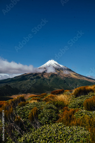 Fotografía del Monte Taranaki en Nueva Zelanda.