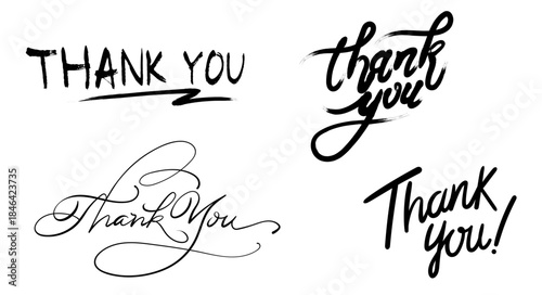 Four distinct hand-lettered "Thank you" designs, used to convey gratitude in creative greetings, notes, or decor.