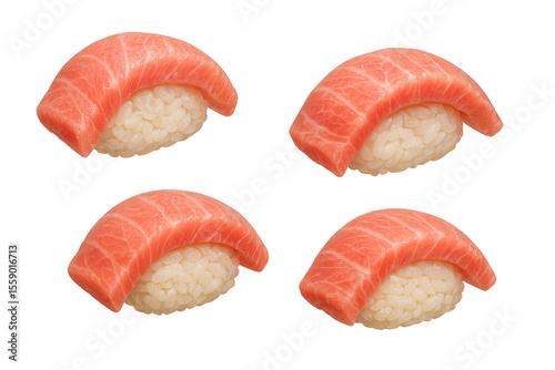 sushi, tuna, seafood, japanese food, asian cuisine, raw fish, fresh, delicious, epicure, isolated, cut-out, studio shot, closeup, food photography, healthy, meal, traditional, rice, fish, red, white, vibrant, culinary, eatery, exquisite, delicacy, alimentary, set, group, 4, collection, clipping path, clean, professional, prepared
