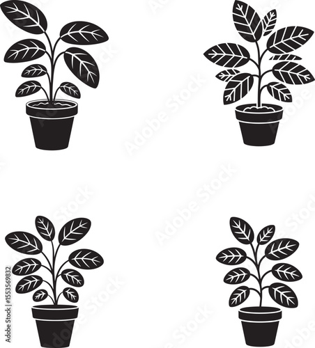 plant, potted plants, houseplant, indoor plant, silhouette, icon, vector, graphic, design, illustration, leaf, leaf, botany, nature, growth, greenery, decor, home decor, minimalist, simple, clean, isolated, white background, black-and-white, outline, drawing, art, pattern, set, collection, group, arrangement, foliage, stem, pot, container, garden, organic, flora, botanical, vegetation, flora