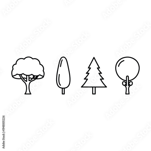 Four tree icons in a line drawing style vector