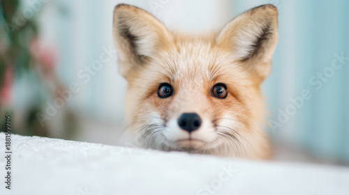 fox, animal, curiosity, indoor, bright, low, surface, expression, nature, pet, wildlife, attention, looking, ear, fur, playful, small, wild, home, scene, observation, domestic, quiet, cute, interest, habitat, behaviour, gaze, warm, colours, eye, friendly, environment, space, texture, curious, look, attentive, watching, angle, whisker, nose, soft, alertness, surrounding, natural