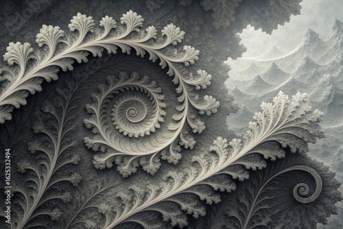 Fractal Forms and Spiral Designs in Monochrome Palette