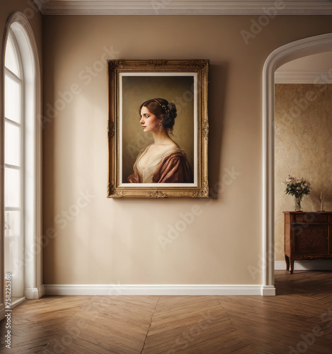 Frame mockup in vintage hallway interior background,