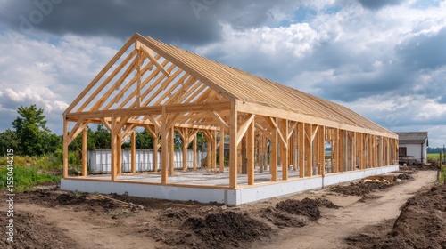 wooden, roof, construction, framework, building, structural, architecture, development, site, house, construction site, rooftop, timber, building exterior, built structure, new, carpenter's shop, material, outdoors, horizontal, no people, photo, sky, america, beam, blue, board, build, carpenter, exterior, frame, framing, home, housing, industrial, industry, job, log, occupation, pallet, plank, plywood, project, property, real estate, remodel, renovation, residential, shell