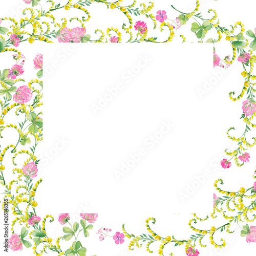 floral, plant, summer, leaf, flower, spring, clover, watercolor, frame, illustration, garden, background, botanical, meadow, nature, invitation, green, blossom, drawing, season, field, design, decoration, wedding, bloom, herb, chaplet, wild, greeting, beautiful, natural, decorative, vintage, grass, border, bouquet, card, pattern, hand, flora, white, buttercup, element, isolated, cornflower, colours, romantic, herbal, wildflower