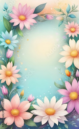flower, frame, floral, nature, flower, spring, border, design, illustration, art, vector, summer, pink, pattern, card, daisy, plant, decoration, blossom, leaf, yellow, beauty, rose, ornament, bloom, flora