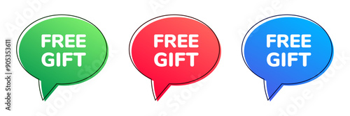 Free gift colorful speech bubble set. Vector icon