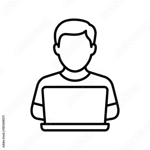 laptop, man, computer, men at work, student, freelancer, online, working, education, office, cyberspace, technology, person, user, icon, avatar, outline, simple, stroke, programmer, developer, remote, digital, male, communication, learning, business, professional, web, startup, character, graphic, vector, illustration