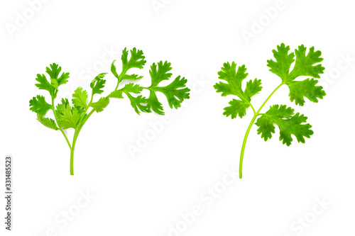 Fresh and green coriander leaves isolation on a white background. Food and healthy concept.