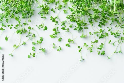 Fresh and vibrant microgreens laying flat against a soft pastel background, showcasing the essence of healthy eating and cooking.