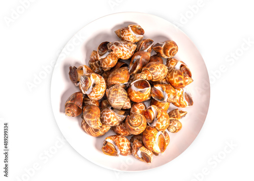Fresh areola babylon or spotted babylon on white backgroundready to cook , Fresh areola babylon or spotted babylonon isolate on white with clipping path .