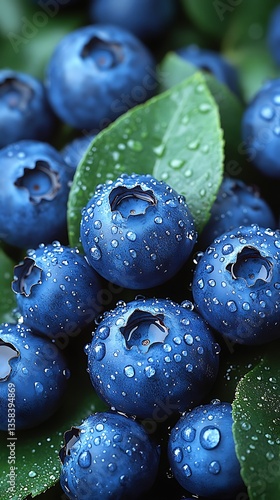 Fresh blueberries are glistening after a gentle summer rain shower