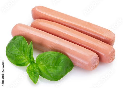 sausage, isolated, boiled, fresh, meat, beef, pork meat, food, meal, nourishment, product, raw, whole, tasty, basil, white, background, nobody, closeup