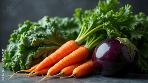 Fresh Carrots, Kale, and Eggplant: Nutritious Vegetables for Healthy Cooking and Vegan, Vegetarian Diets