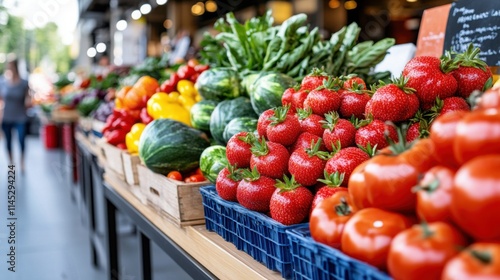 Fresh Colorful Vegetables and Fruits Displayed at Outdoor Market, Ideal for Healthy Eating Promotion